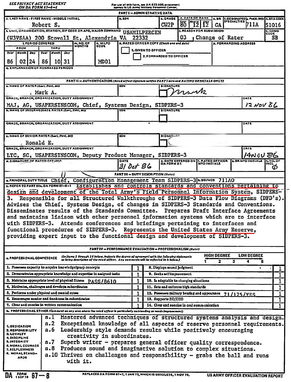 the entire Army, from 1986 to 1988. I went on to First United States